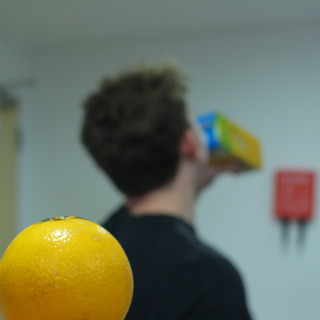 For this project we came up with our idea from a spontaneous joke at that moment. I happened to say 'imagine fruit came alive and were all different personality and some became killers' and then I looked in my fridge and seen oranges and that was how the idea unfolded. For this 6 story, sequential image narrative task I decided that my theme would be 'unexpected surprise'.